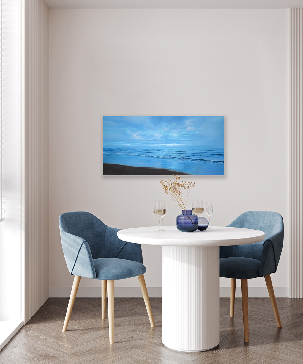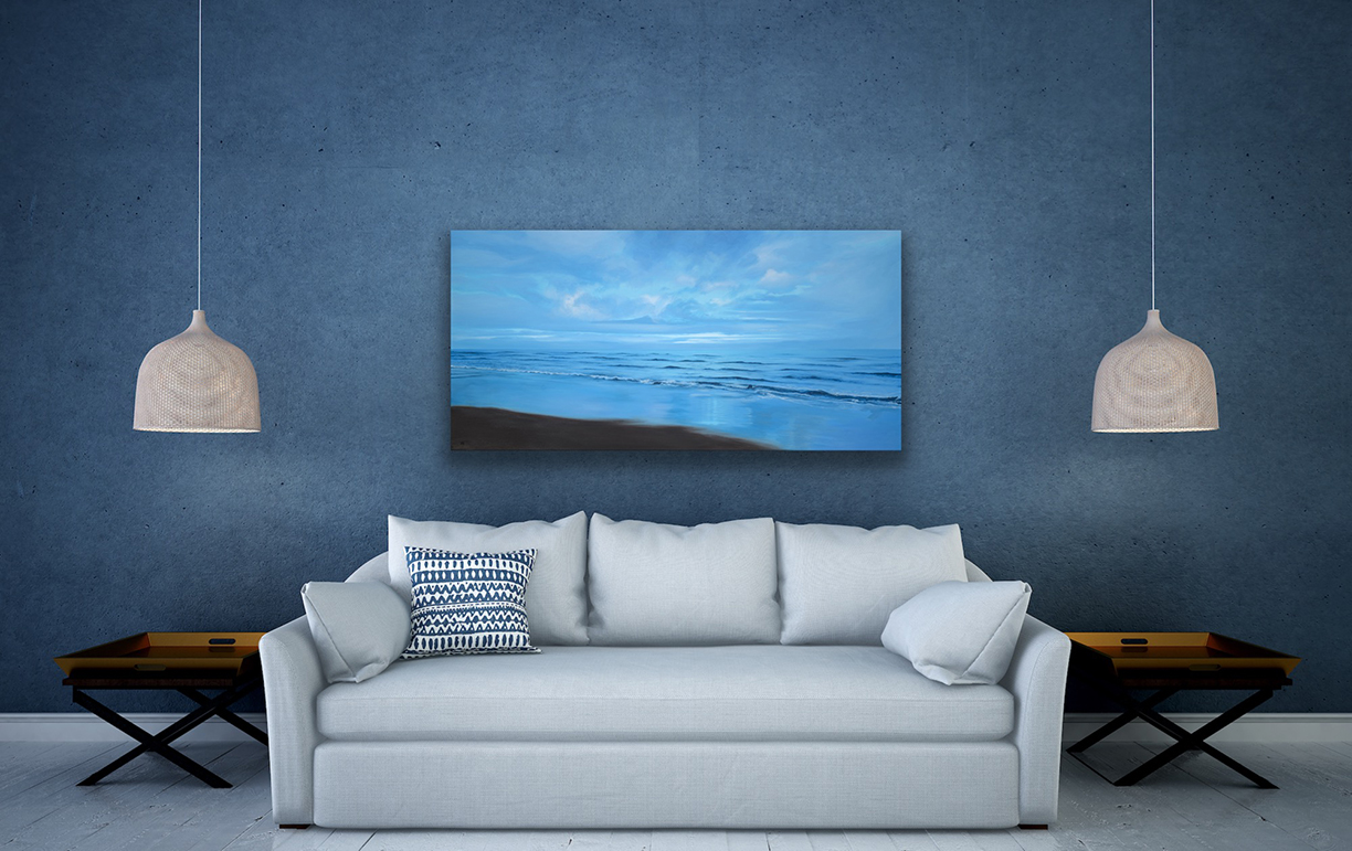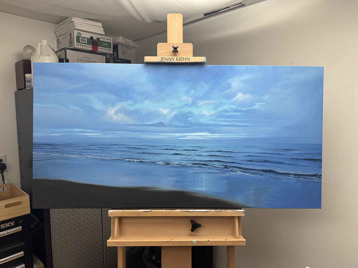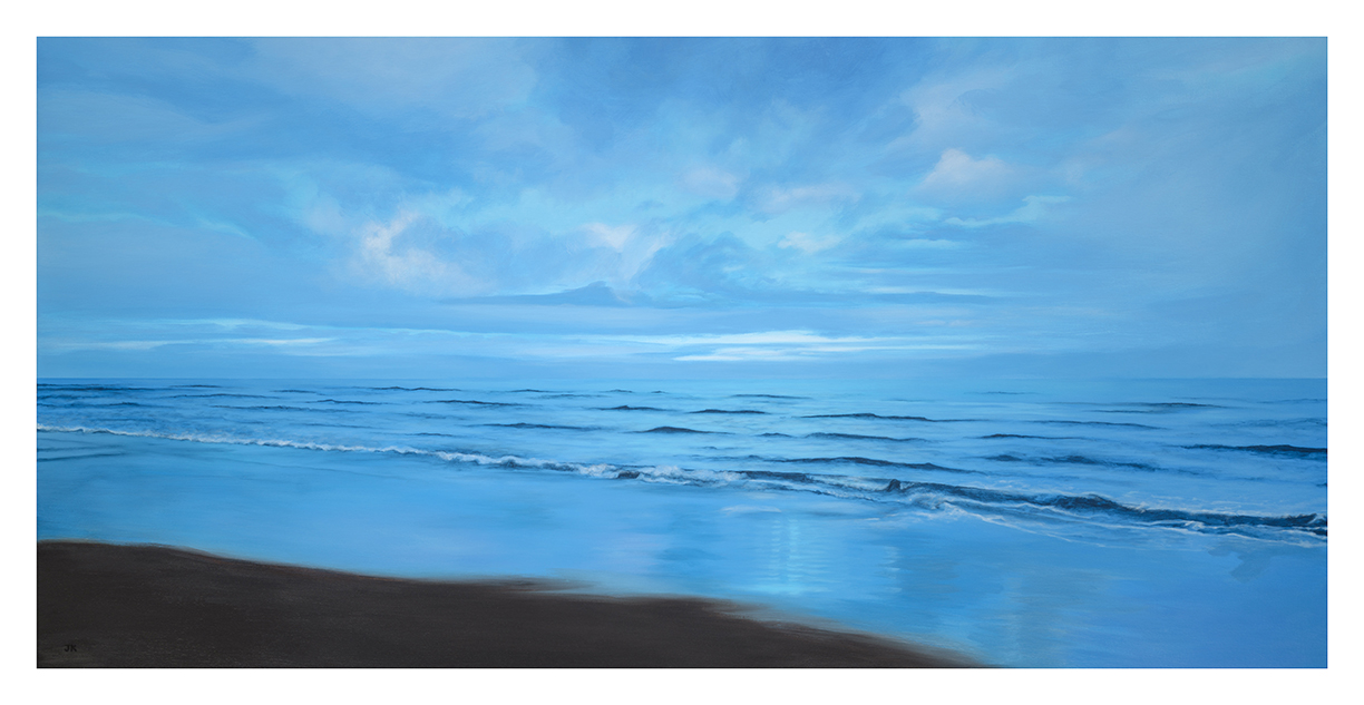 This is based off of a photograph of Druridge Bay in the UK, a spot very dear to the family of the collector who commissioned this painting.